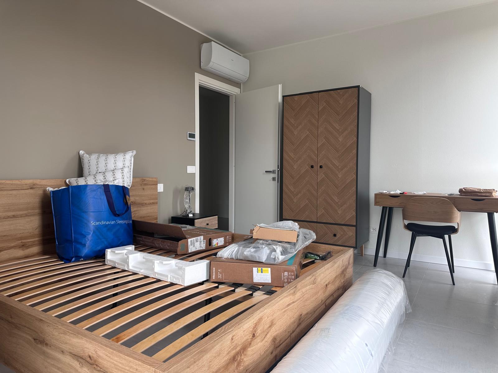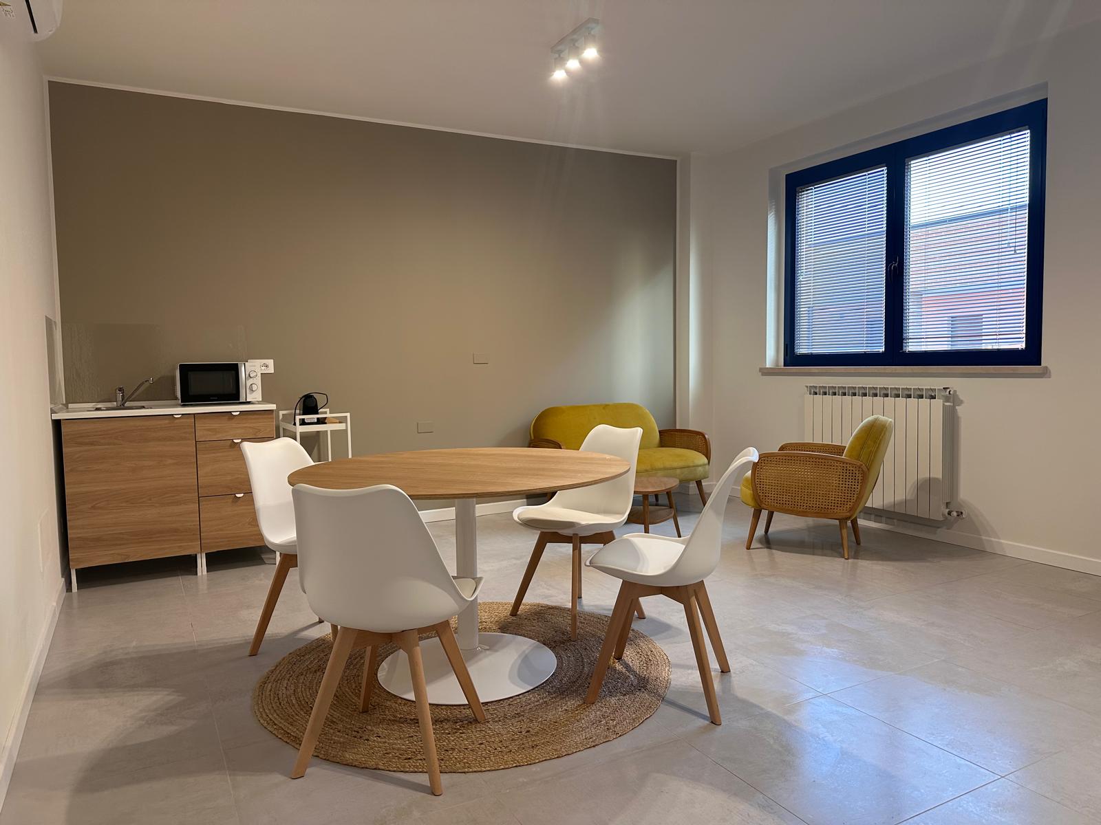 Questo affittacamere nasce da un cambio di destinazione d’uso di vecchi uffici. Il progetto ha visto la creazione di un soggiorno comune con una piccola cucina e una zona pranzo, una camera singola, una camera doppia e una tripla e due bagni.